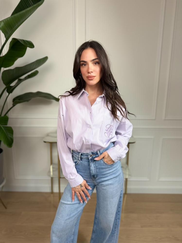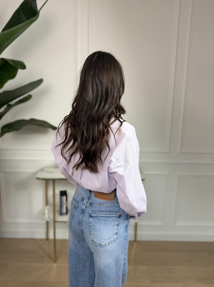 Štýlová Joleen košeľa v jemnej pastelovej fialovej farbe s bielymi pásikmi je ideálnym kúskom pre moderný a ležérny vzhľad. Má oversize strih, ktorý zaručuje maximálne pohodlie a trendový efekt.
