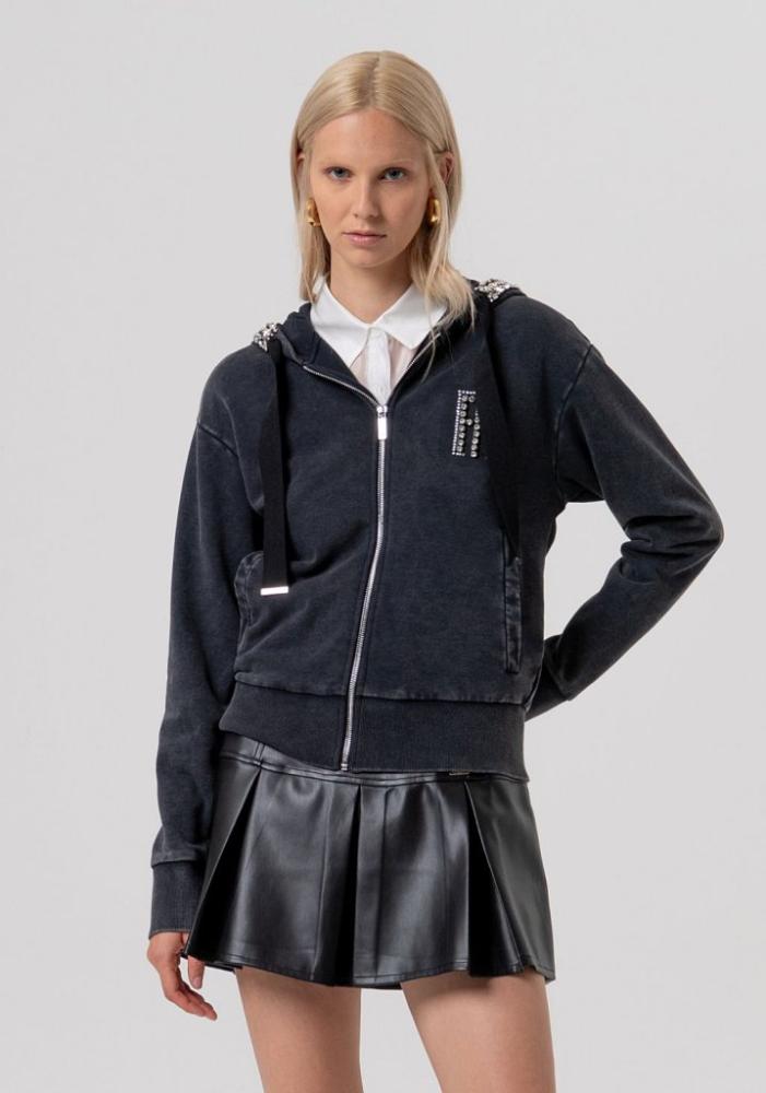 Dámska čierna mikina Fracomina s ozdobnými kamienkami