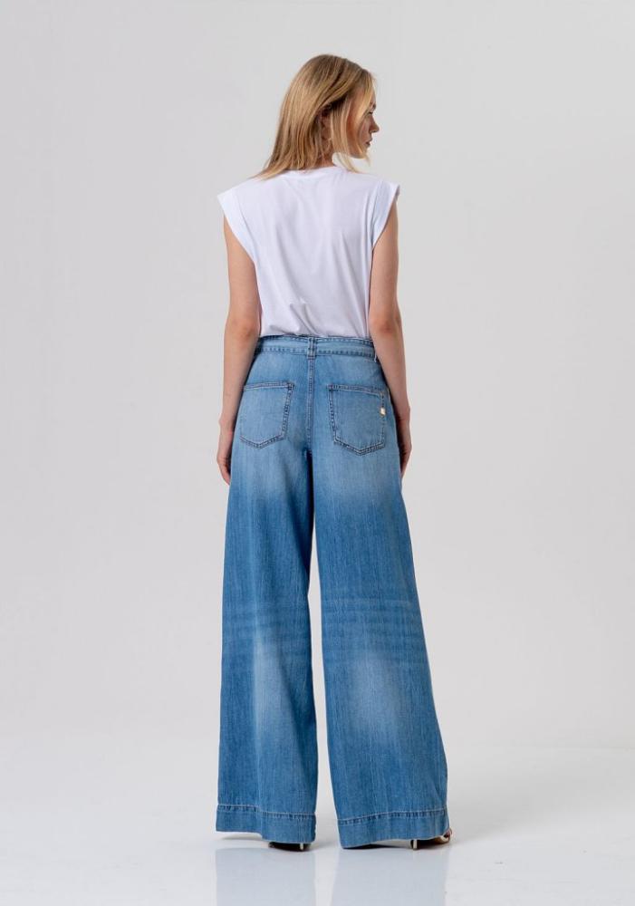 Vykročte do novej sezóny štýlovo a v maximálnom pohodlí s týmito neprehliadnuteľnými širokými džínsami od značky Fracomina. Tento kúsok v populárnom "palazzo" strihu je dokonalým spojením uvoľnenej ležérnosti a mestskej elegancie, vďaka čomu okamžite oživí váš jarný a letný šatník.