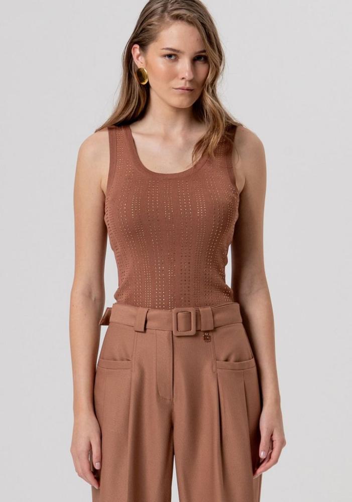 Elegantné nohavice Fracomina s opaskom v tónoch škorice
