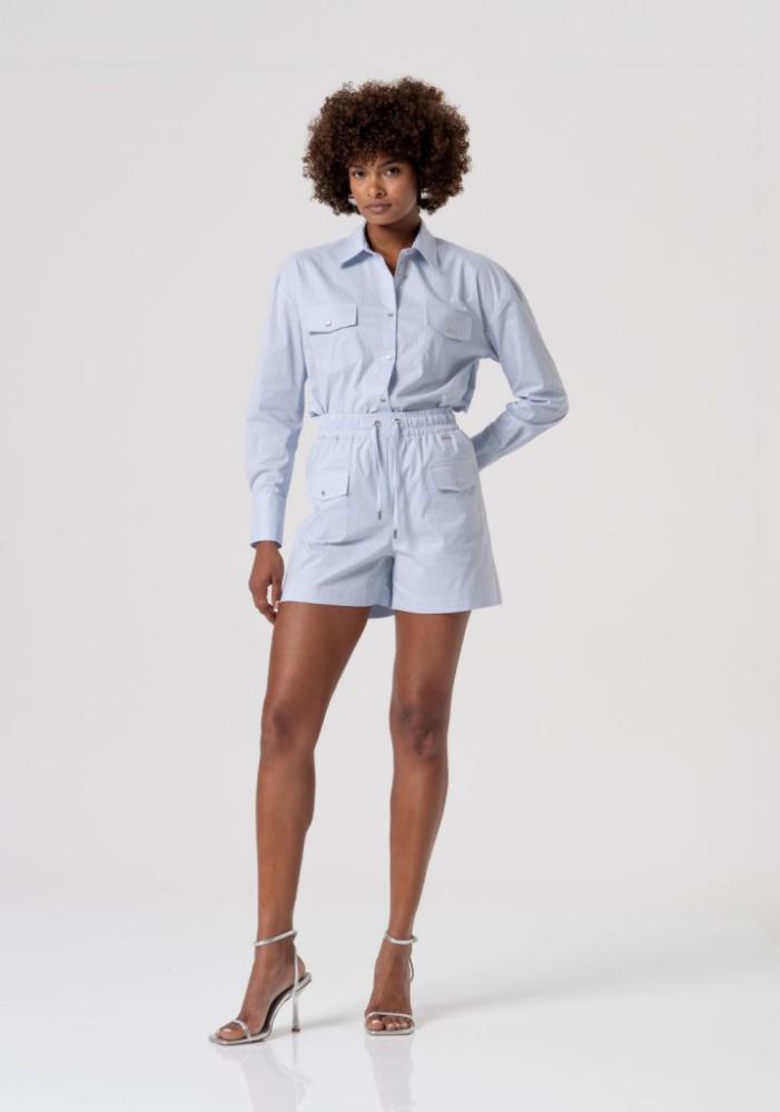 Spojte absolútne pohodlie s neprehliadnuteľným letným štýlom. Tieto svetlomodré pruhované šortky od značky Fracomina prinášajú do vášho šatníka sviežosť a ležérnu eleganciu, ktorú si zamilujete na prvé oblečenie.