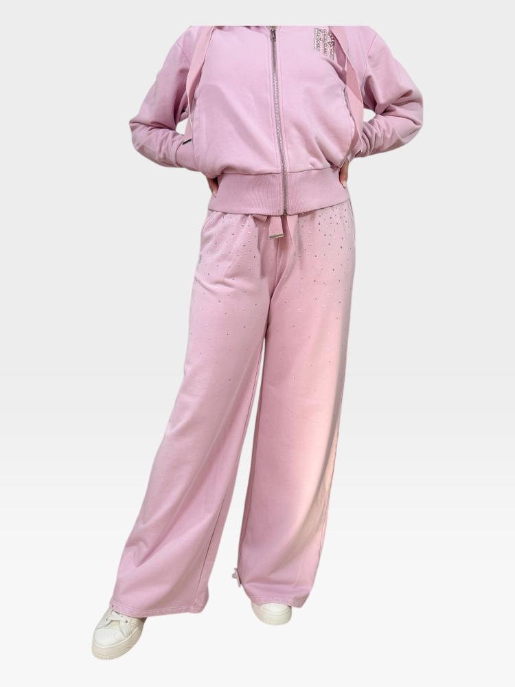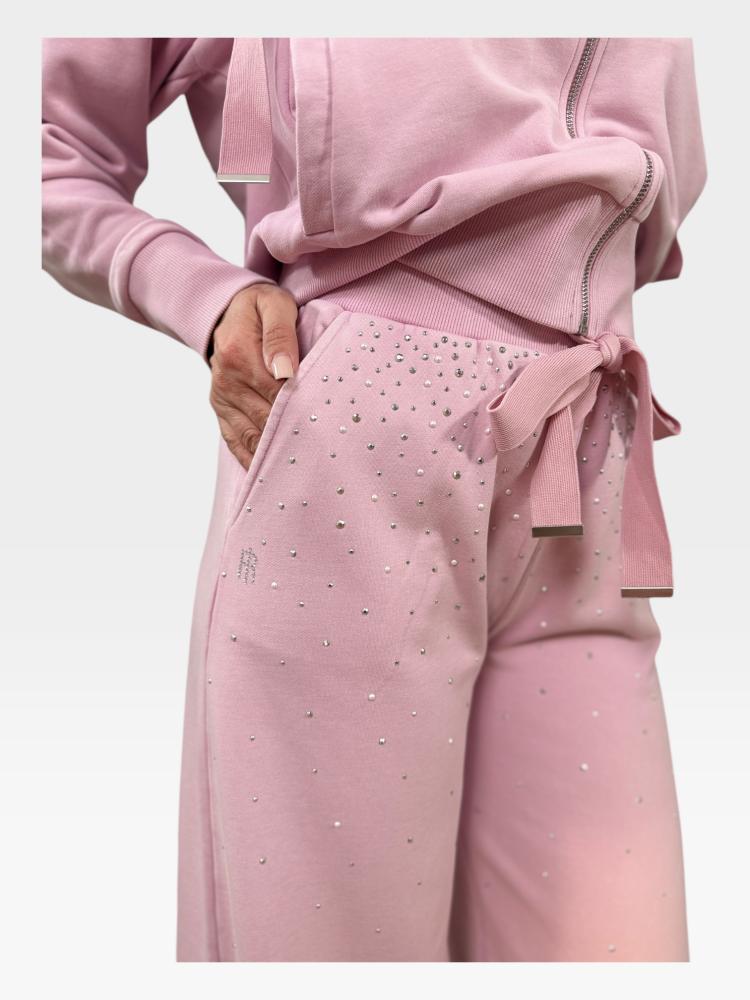 Dokonalý relax v trblietavom prevedení a absolútnom pohodlí. Tieto úchvatné ružové tepláky od značky Fracomina posúvajú hranice voľnočasovej módy na úplne novú úroveň. Zabudnite na nudné domáce oblečenie – tento kúsok spája maximálny komfort s neprehliadnuteľným "glamour" efektom a zaručí, že sa budete cítiť výnimočne aj počas oddychu.