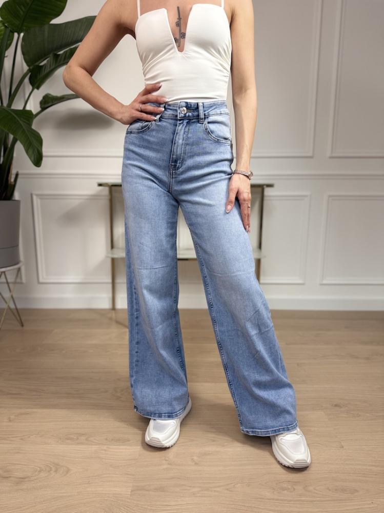 Strih: Wide Leg (široké nohavice) s vysokým pásom (High Waist)