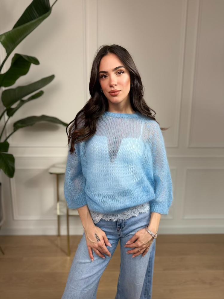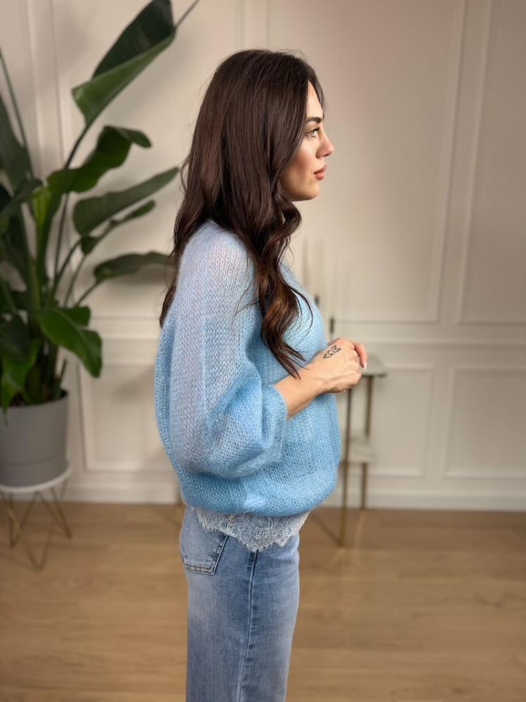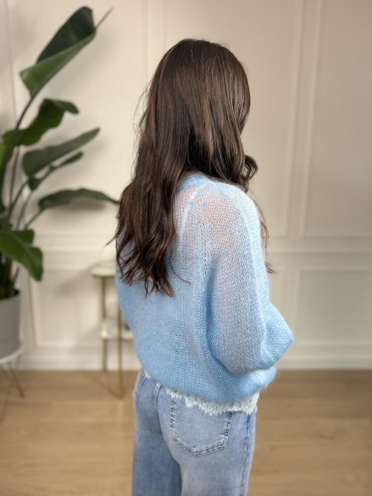 Joleen sveter – pastelovo modrý s moherom Jemný a ženský. Joleen sveter v pastelovej modrej farbe je ideálny kúsok na vrstvenie aj samostatné nosenie. Obsah moheru mu dodáva mäkkosť a luxusný vzhľad, zatiaľ čo mierna transparentnosť pôsobí ľahko a elegantne. Sveter má mierne oversize strih, ktorý zaručuje pohodlie a moderný vzhľad. Je príjemný na dotyk a skvelo doplní ležérne aj romantické outfity. Detaily: pastelová modrá farba obsah moheru jemný, mäkký materiál mierne transparentný mierne oversize strih Perfektný k džínsom, sukni aj šatám – nadčasový kúsok, ktorý dodá outfitu jemnosť a štýl.