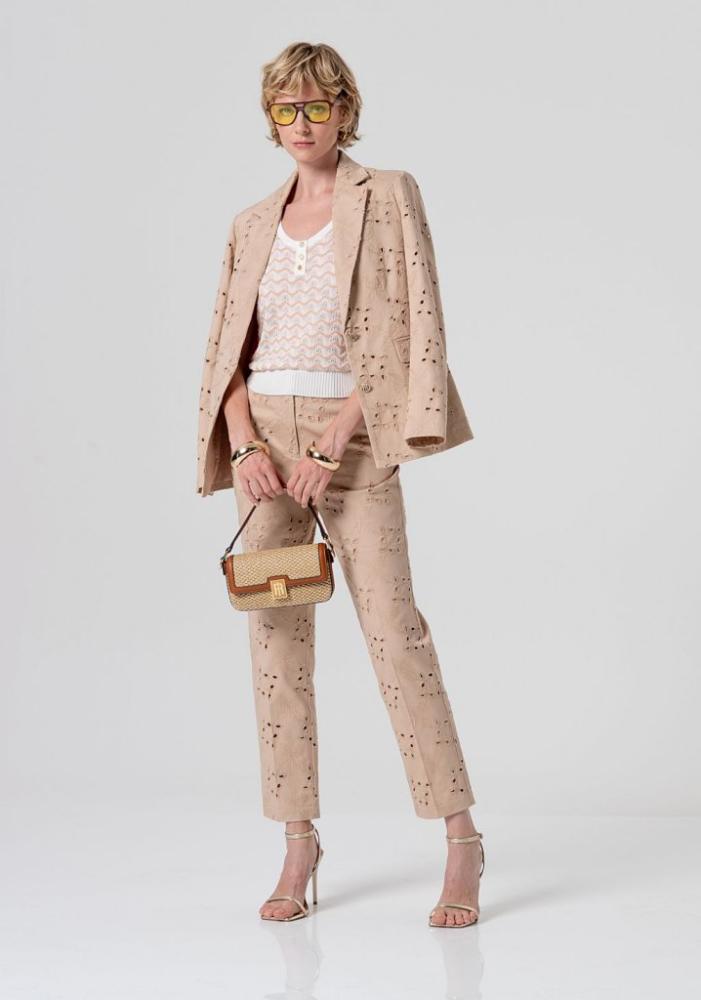 Svieži vánok a nenútená elegancia pre vaše letné dni. Tento nádherný úpletový top od značky Fracomina v jemných bielo-béžových tónoch je stelesnením romantickej ženskosti, ktorú si vo svojom šatníku okamžite zamilujete.