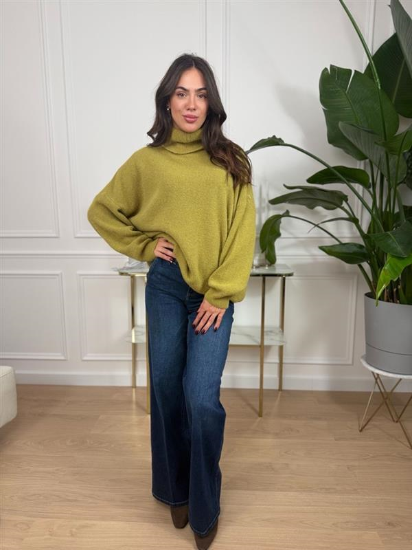Spoj eleganciu s pohodlím v zelenom sveteri Imperial. Je mierne širšieho strihu, čo mu dodáva uvoľnený a trendy charakter, zatiaľ čo jemný stojačik zvýrazňuje jeho moderný vzhľad.