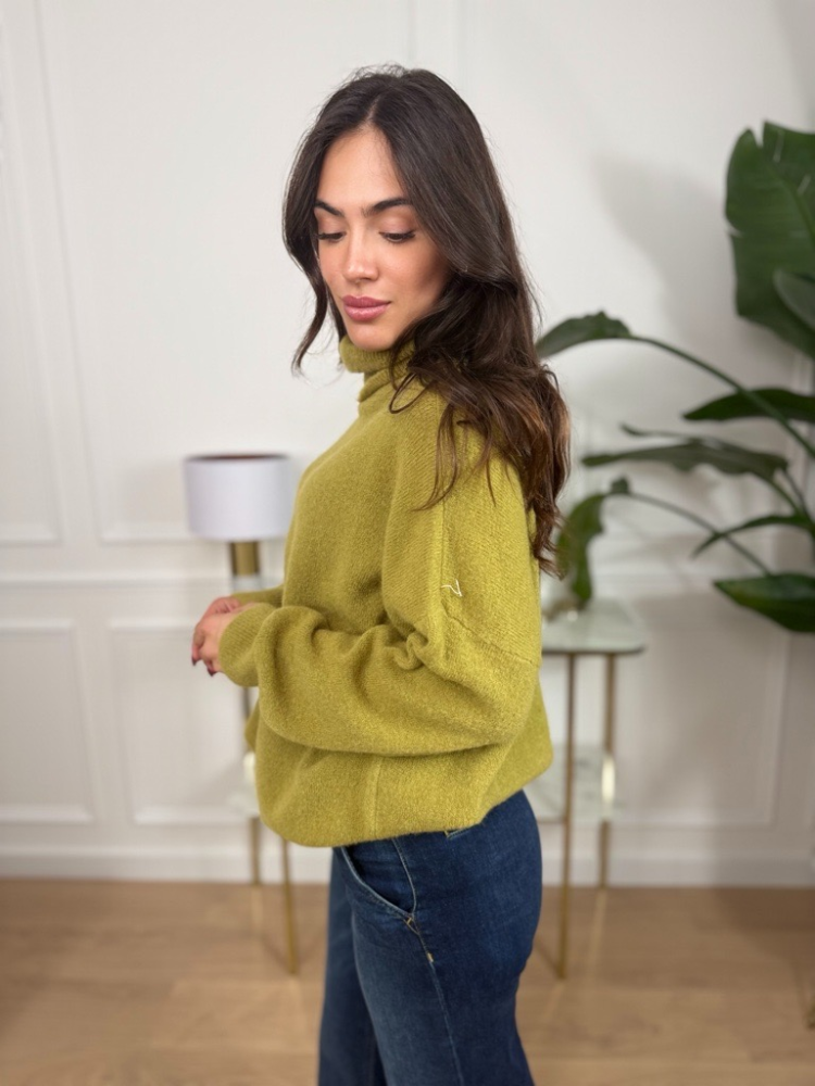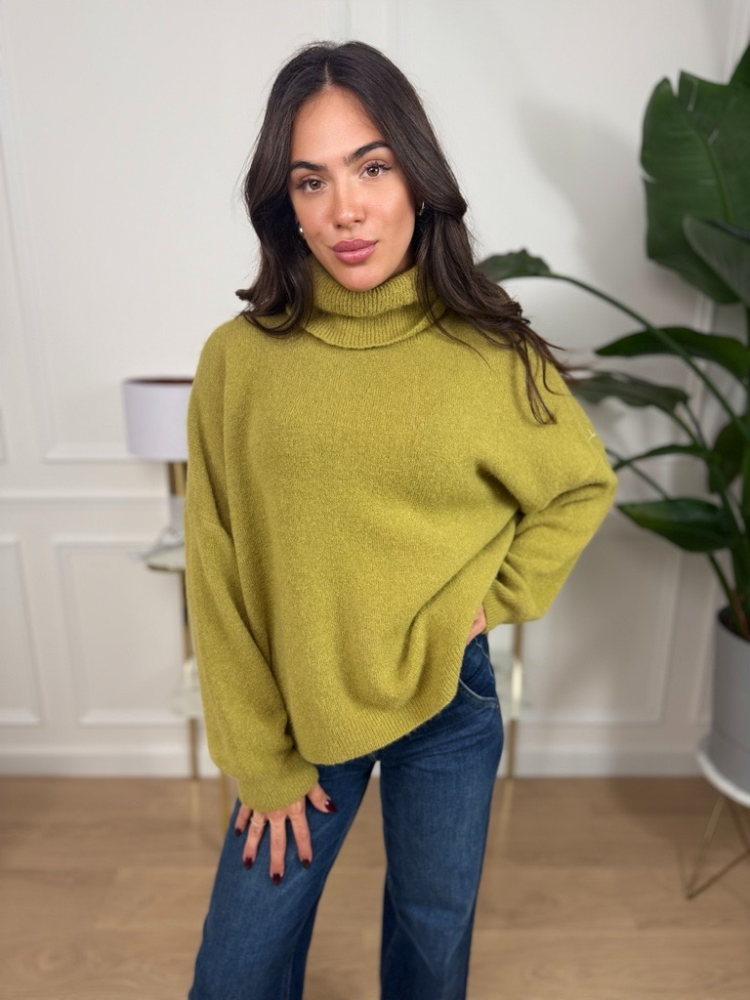 Zloženie s podielom luxusnej alpaky prináša hrejivosť, jemnosť a výnimočne príjemný pocit pri nosení. Zelený odtieň dodá outfitu sviežosť a ľahko sa kombinuje – skvelo vynikne s džínsami, nohavicami aj sukňou.