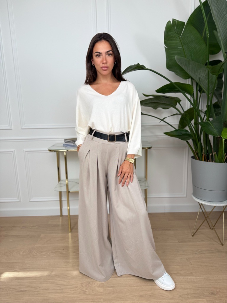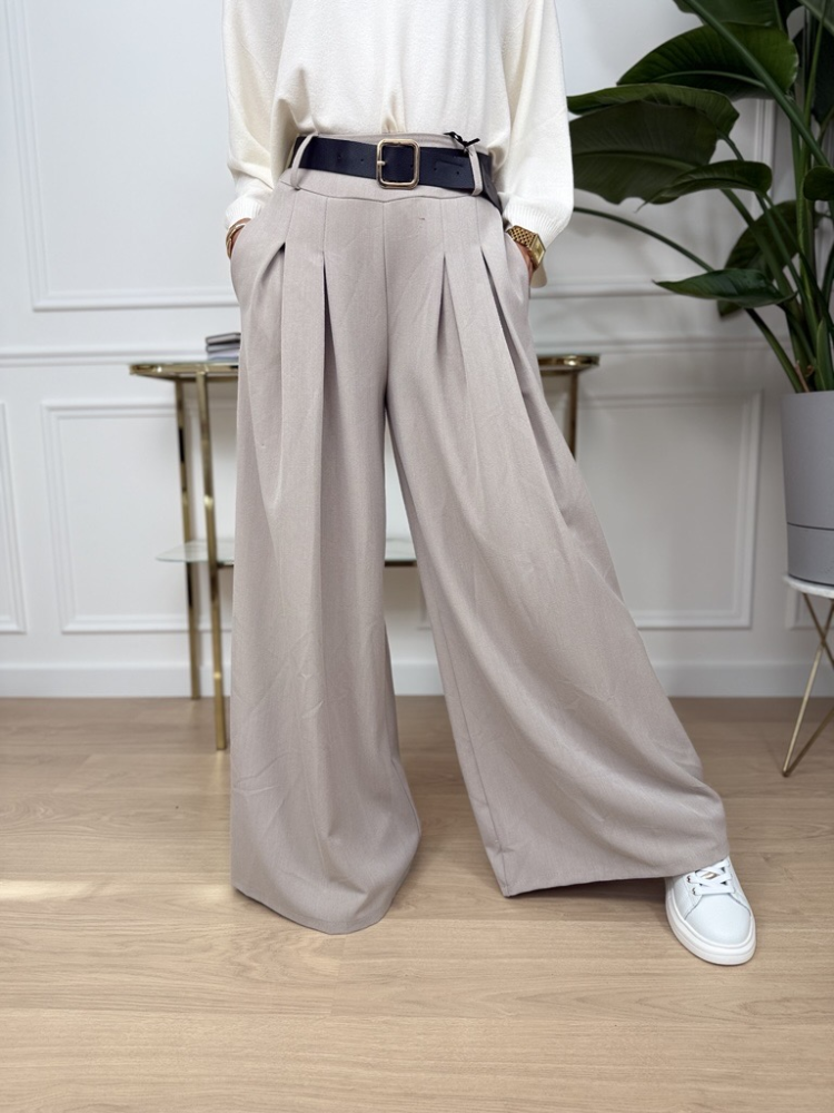 Elegantné a pohodlné dámske nohavice v trendy hnedom odtieni so širokým strihom. Vďaka voľnému padavému materiálu pôsobia vzdušne a zároveň štýlovo. Vyšší pás zvýrazní siluetu a dodáva celkovému looku eleganciu.