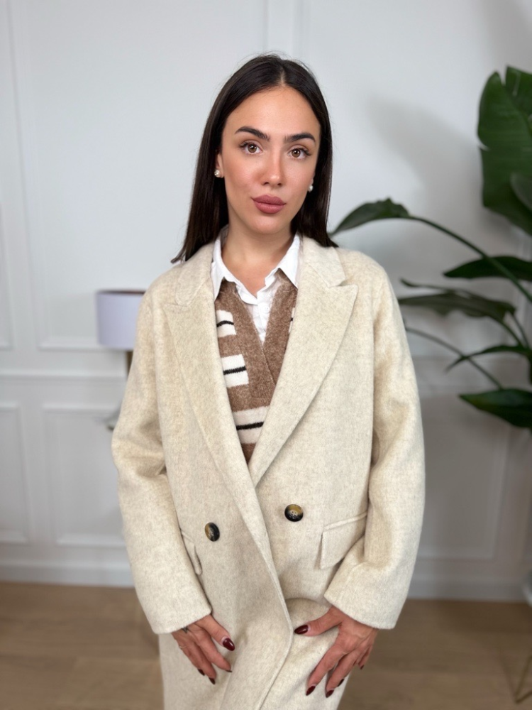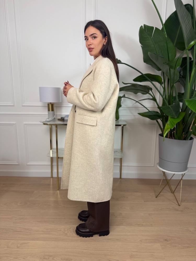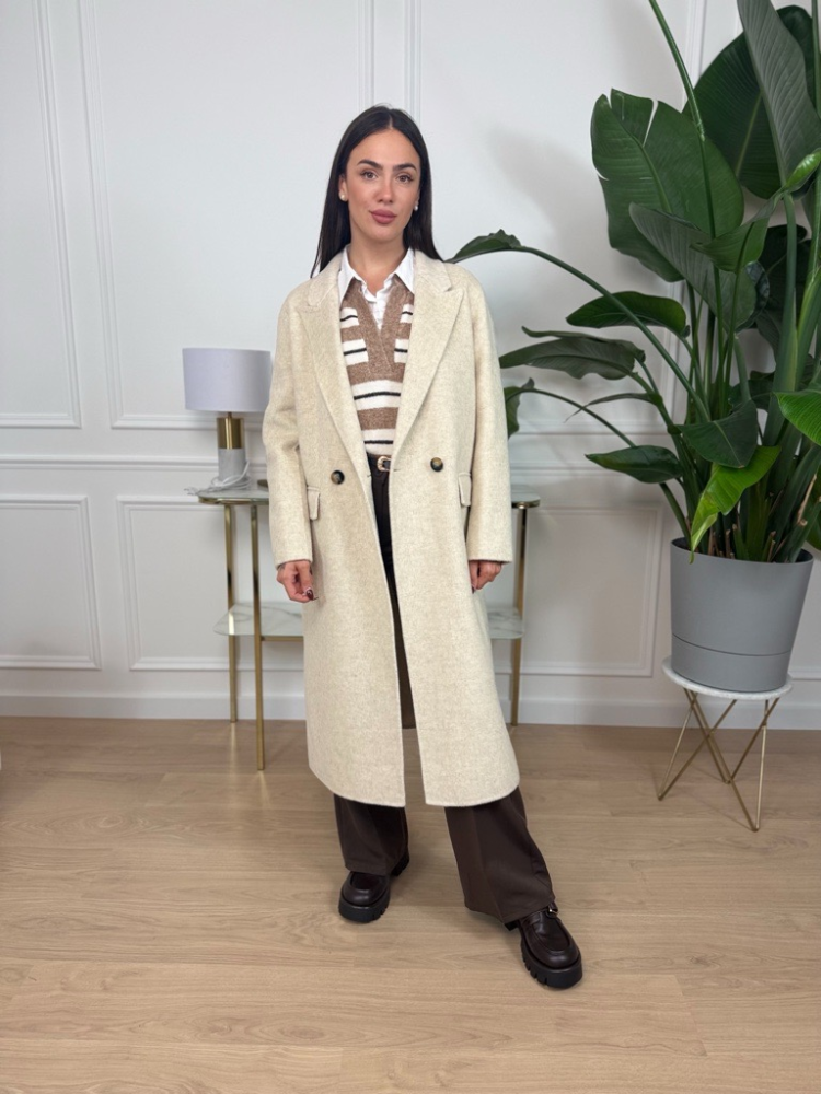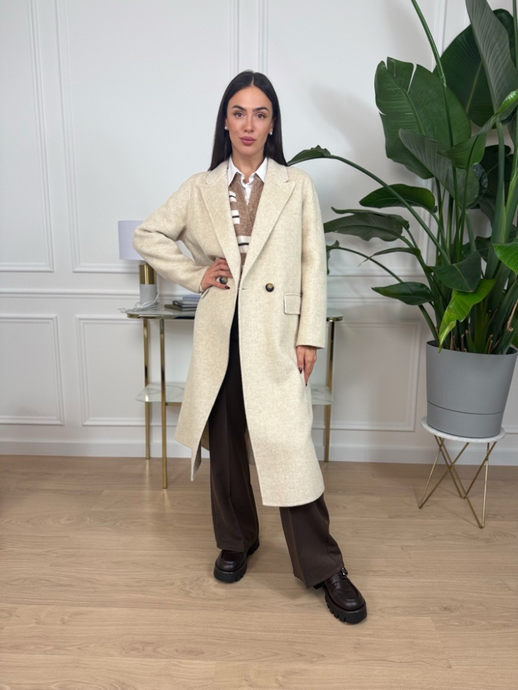 Elegantný dámsky kabát značky Joleen v nadčasovej krémovej farbe. Tento kabát je ideálnou voľbou na chladnejšie dni – pôsobí štýlovo, je pohodlný a ľahko sa kombinuje s rôznymi outfitmi. Má klasický rovný strih, dĺžku po kolená a zapínanie na jeden gombík, ktoré dodáva celkovému vzhľadu šmrnc.