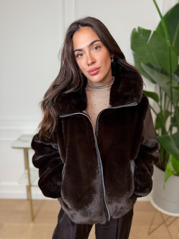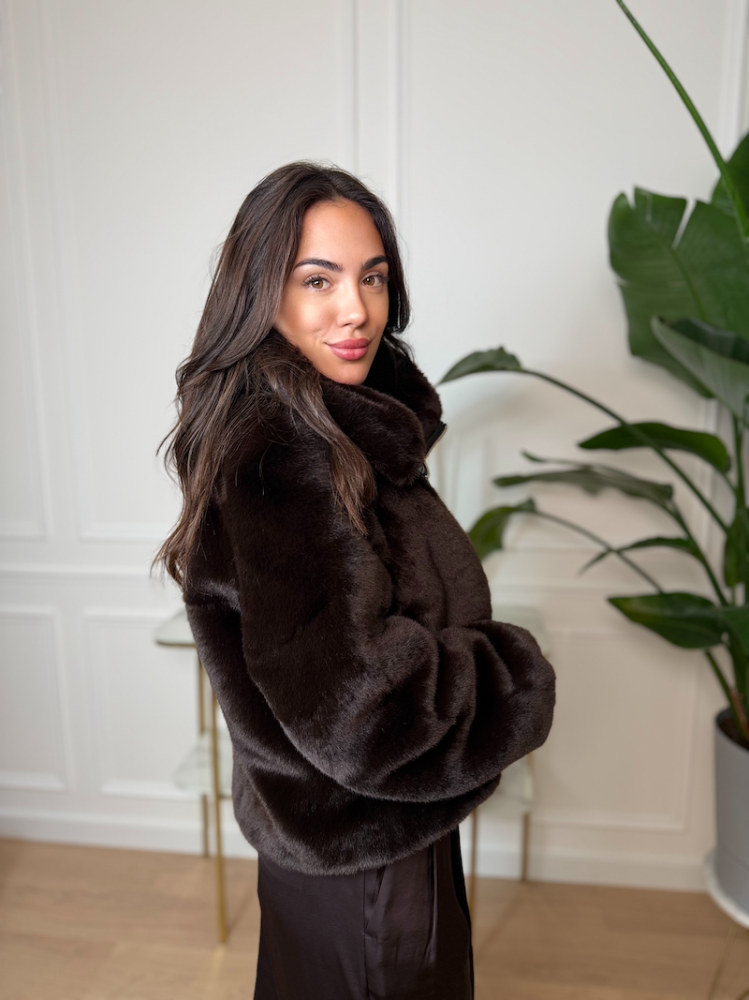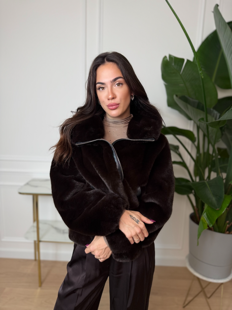 Doprajte si luxusný komfort počas chladných dní s exkluzívnym kožuchom JOLEEN. Jeho mimoriadne hebká, hustá a na dotyk príjemná kožušinová štruktúra pôsobí elegantne a prémiovo. Tmavohnedý odtieň dodáva kabátu hĺbku, nadčasovosť a jednoduché kombinovanie s akýmkoľvek outfitom.