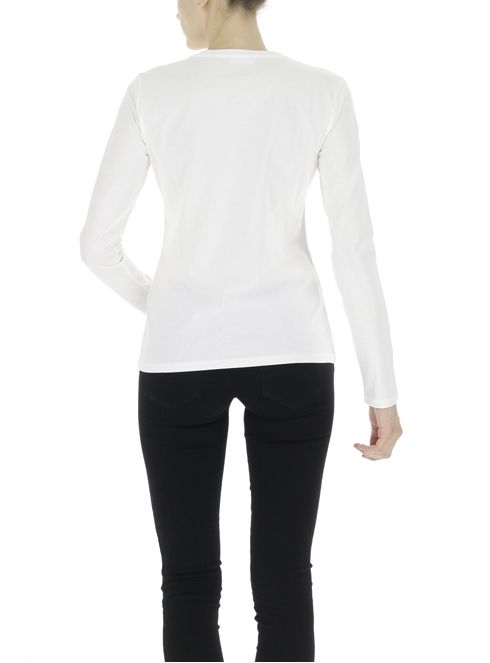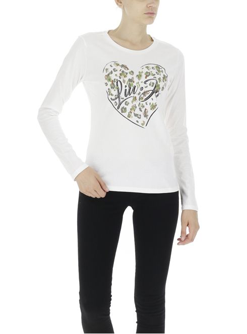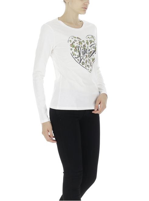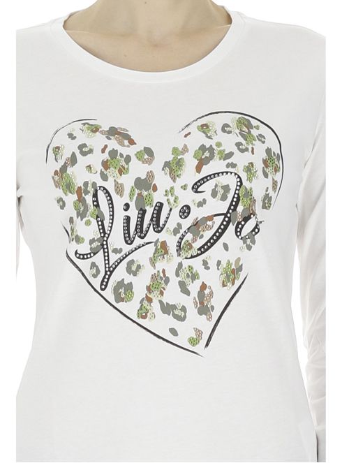 LIU JO Biele tričko. Okrúhly výstrih. Dlhé rukávy. Na prednej strane nápis značky s aplikáciou kamienkov. Ceny sú vrátane DPH. Dostupné veľkosti uvedené v možnostiach košíka.