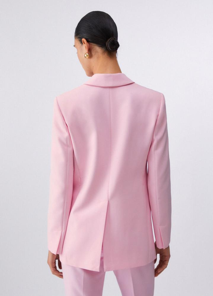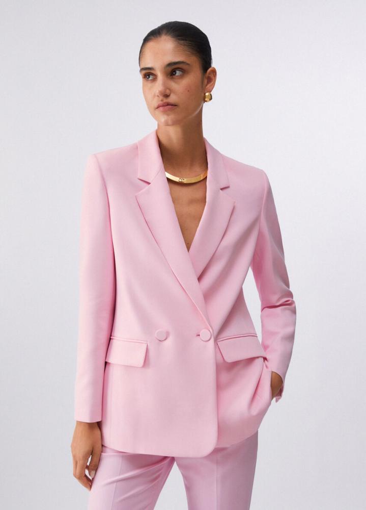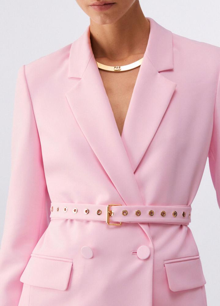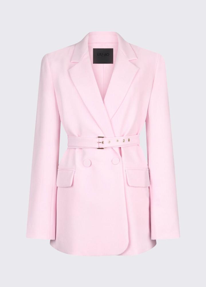 Toto sako z elastickej látky dopĺňa siluetu elegantným dvojradovým zapínaním, ktoré je v páse stiahnuté elegantným opaskom s očkami. Je perfektné ako sako do kancelárie alebo na špeciálne príležitosti a môžete ho nosiť s ladiacimi nohavicami alebo cez jednoduché šaty.