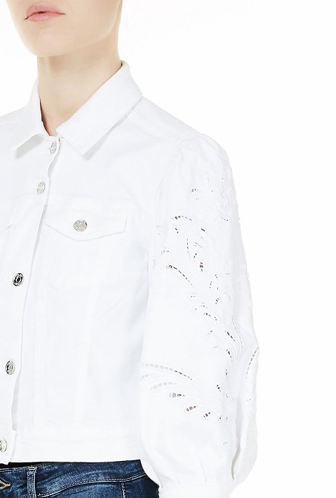 PREVEDENIE: Liu Jo dámska biela riflová bunda s madeira vzorom. Bunda s ozdobnými striebornými gombíkami, strihom do pása. Bunda s balónovými, trojštvrťovými rukávmi s madeira vzorom. FARBA: biela ZLOŽENIE: 93% Bavlna, 5% Polyester, 2%Elastan Ceny sú uvedené s DPH. Dostupné veľkosti sú uvedené v možnostiach košíka.