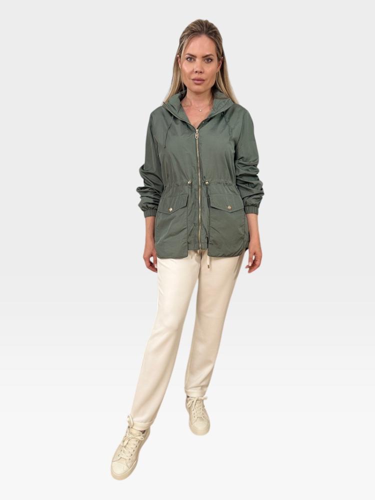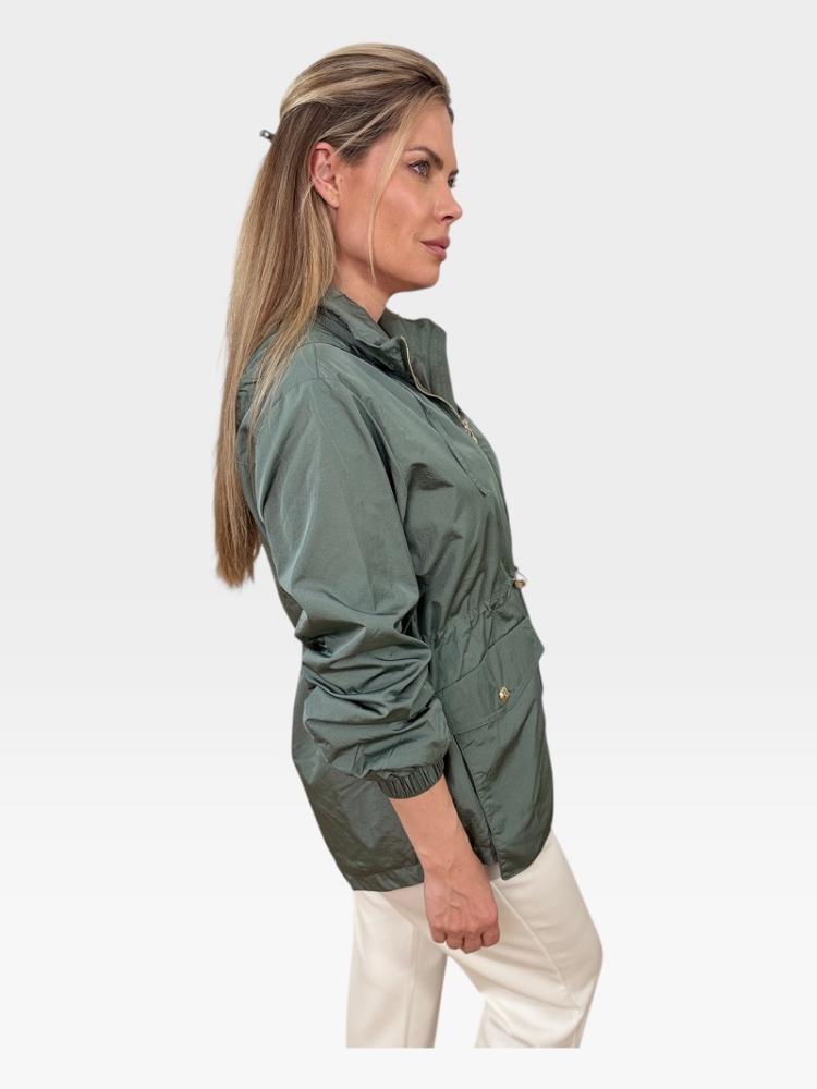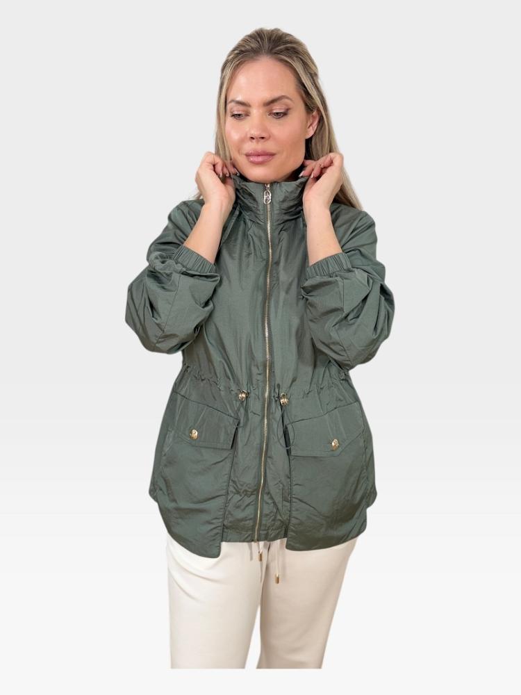 Bunda má zapínanie na zips a v páse je doplnená o sťahovanie, vďaka čomu si ju môžete prispôsobiť podľa postavy. Nechýbajú ani praktické predné vrecká, ktoré dodávajú modelu ležérny a zároveň funkčný vzhľad.