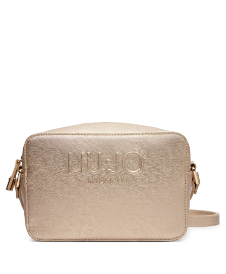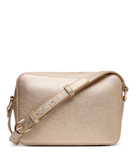 Stredne veľká crossbody kabelka v zlatej farbe.