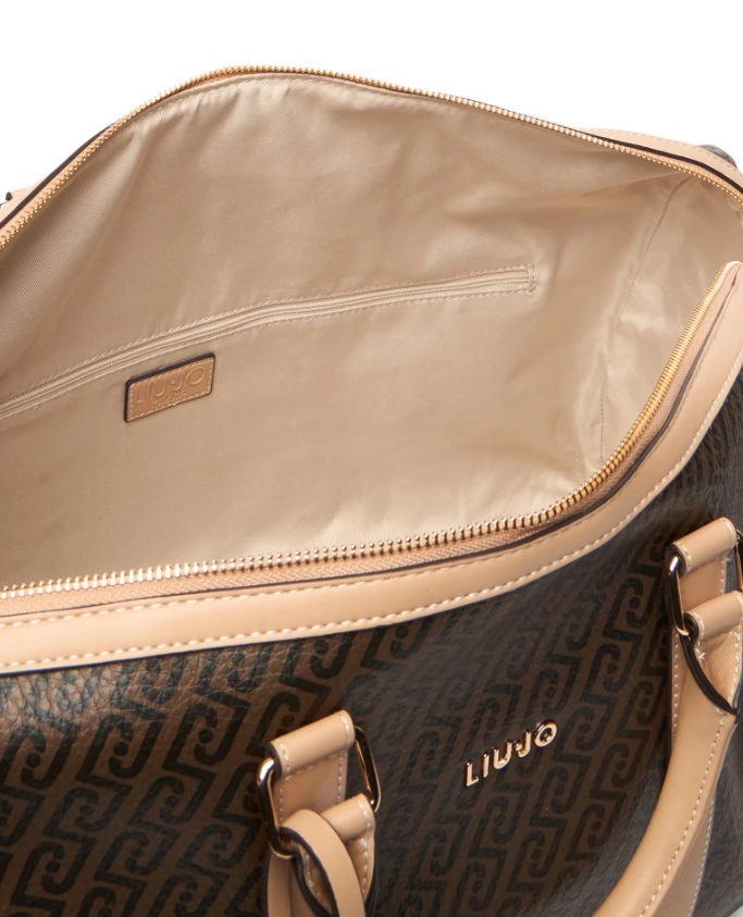 Štýlová cestovná taška LIU JO zaujme na prvý pohľad ikonickým monogramovým vzorom a elegantnými kontrastnými detailmi v béžovej farbe. Nadčasový dizajn robí z tejto tašky ideálneho spoločníka na víkendové pobyty, krátke cesty aj štýlové presuny po meste.