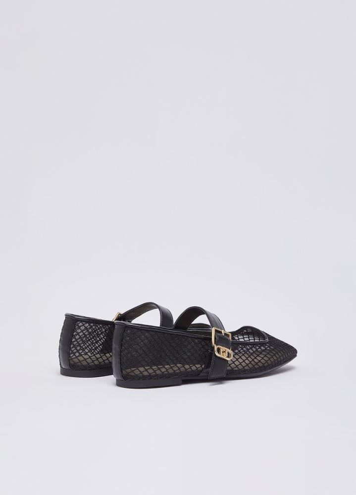 Jemná ženskosť s moderným nádychom. Čierne balerínky so sieťovaným zvrškom prinášajú dokonalú rovnováhu medzi eleganciou a trendovým dizajnom. Transparentná štruktúra pôsobí ľahko a vzdušne, zatiaľ čo pevný kožený remienok so zlatou prackou dodáva modelu sofistikovaný charakter.