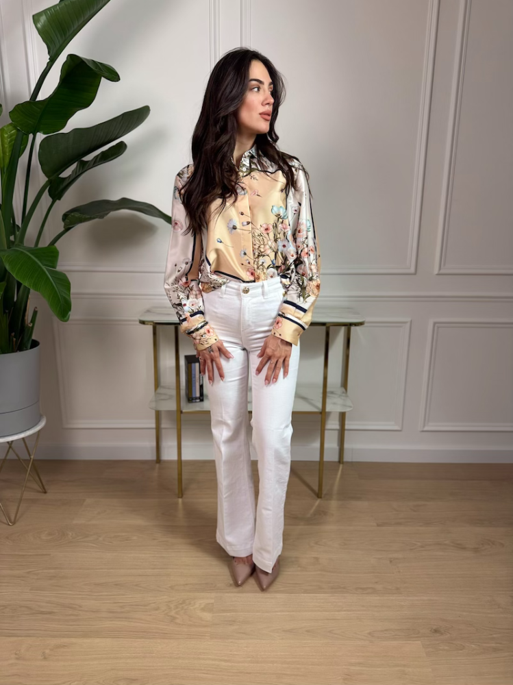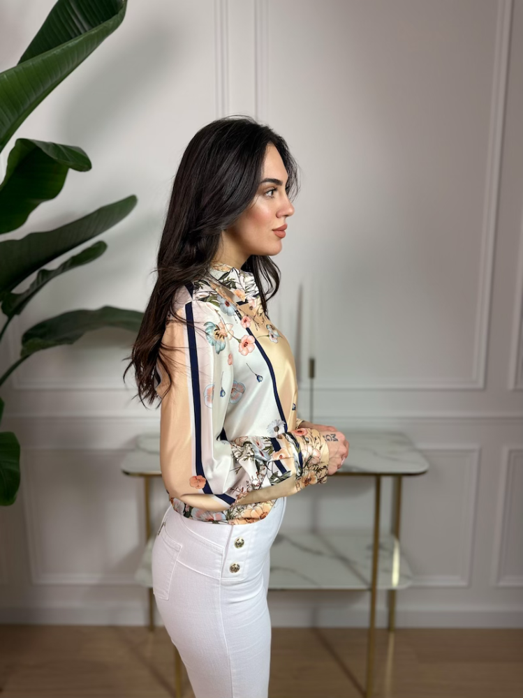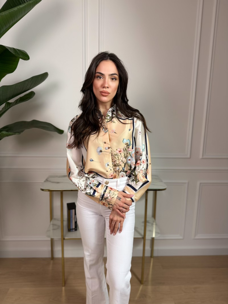 Luxusná LIU JO blúzka z hladkého saténového materiálu pôsobí jemne, elegantne a žensky. Kvetovaný print dodáva modelu svieži a sofistikovaný vzhľad, vhodný na každodenné nosenie aj výnimočné príležitosti.