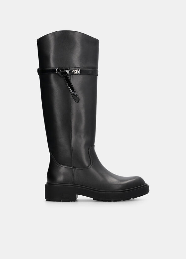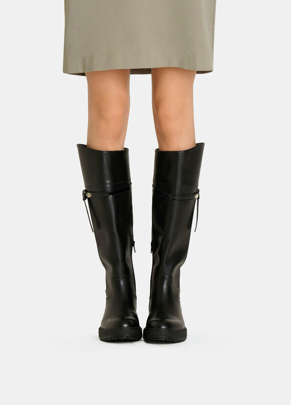Tieto čierne vysoké čižmy spájajú nadčasovú eleganciu s praktickým komfortom. Vyrobené z hladkej kože s jemným leskom, doplnené decentným kovovým detailom, ktorý dodáva topánkam luxusný nádych. Robustná podrážka zaručuje stabilitu aj počas chladných dní, zatiaľ čo klasický strih opticky predlžuje nohy a zvýrazňuje ženskú siluetu. Perfektné k úzkym džínsom, šatám či kabátu.