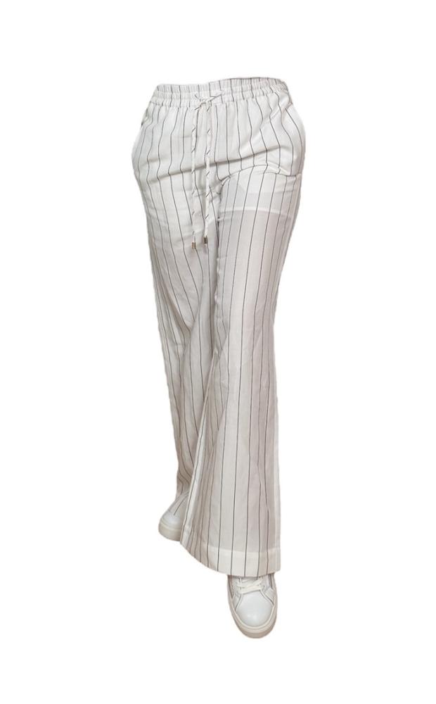 Štýlové dámske nohavice s jemným prúžkovaným vzorom, ktoré sú ideálnou kombináciou pohodlia a elegancie. Vyrobené z ľahkého a príjemného materiálu, skvele sa nosia počas celého dňa – či už do práce, na prechádzku alebo voľnočasové aktivity.