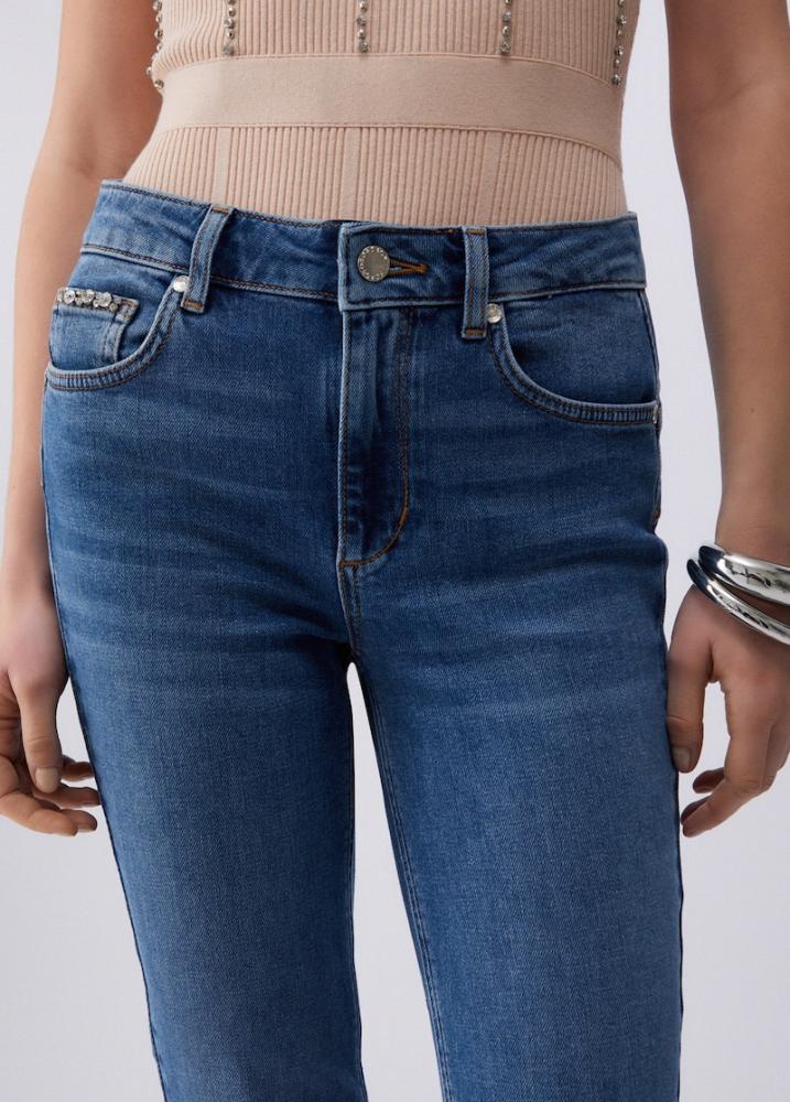 Úzke džínsy z elastického denimu Svetlo kamienkové pranie Strihy odspodu nahor elegantne definujú krivky a vytvárajú harmóniu a oporu bez toho, aby obetovali pohodlie Pohodlné vrecká Vysoký pás Úzke nohavice Zapínanie na gombík a zips Dĺžka nohavíc: 76 cm Šírka lemu: 13 cm Modelka má výšku 175 cm a nosí veľkosť 27