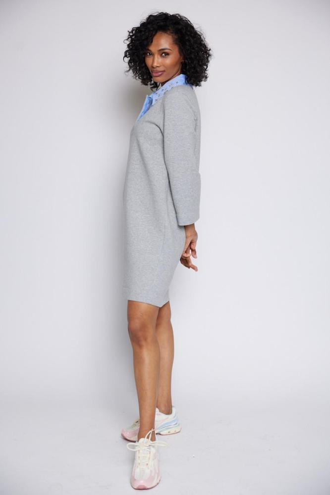 Elegantné a pohodlné dámske šaty značky Liu Jo v nadčasovej sivej farbe. Jednoduchý, čistý strih dopĺňa kontrastný golier, ktorý dodáva modelu moderný a sofistikovaný vzhľad. Rovný strih zabezpečuje komfort pri nosení a lichotí postave.