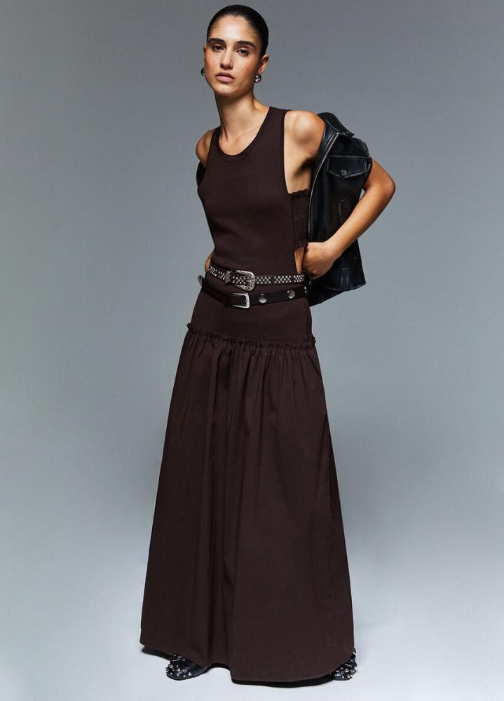 Maxi šaty s naberanou sukňou – Dark Chocolate