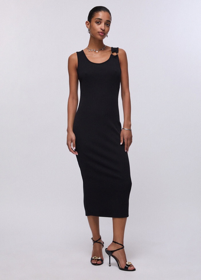 Definícia nadčasového štýlu. Ak hľadáte kúsok, ktorý vás zachráni v každej situácii, práve ste ho našli. Čierna farba v kombinácii s midi dĺžkou okamžite opticky predlžuje a zoštíhľuje postavu. Jemne rebrovaný materiál je dostatočne pevný, aby držal tvar, no zároveň dostatočne elastický, aby vám doprial absolútne pohodlie.