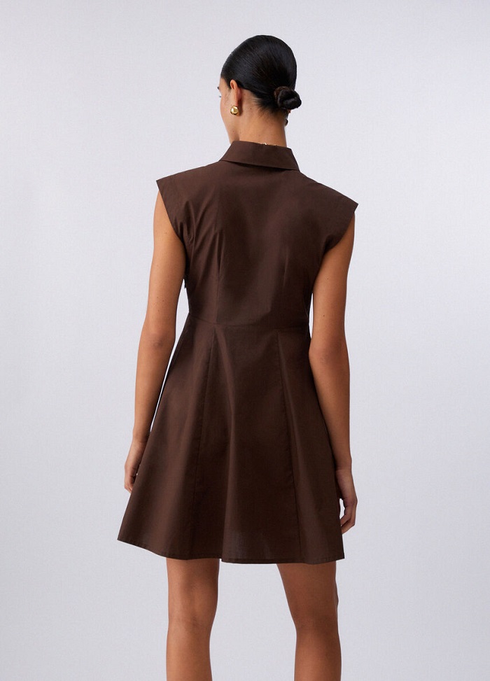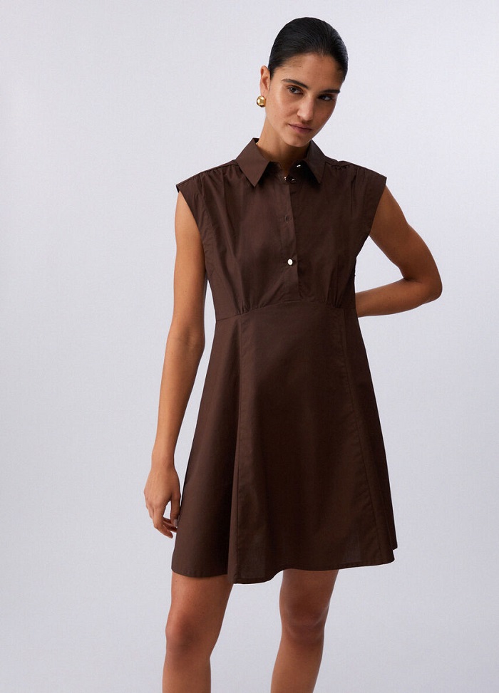 Elegantné šaty v nadčasovej hnedej farbe, ktoré spájajú minimalizmus s ženskosťou. Jednoduchý, no premyslený strih s jemne rozšírenou sukňou krásne zvýrazní siluetu a zároveň poskytuje maximálne pohodlie počas celého dňa.