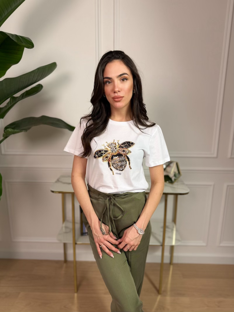 Dámske biele tričko LIU JO s kamienkovou aplikáciou včielky