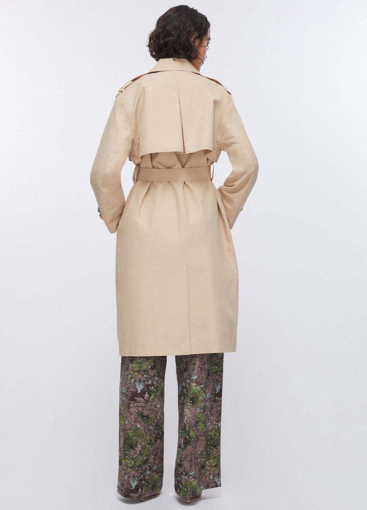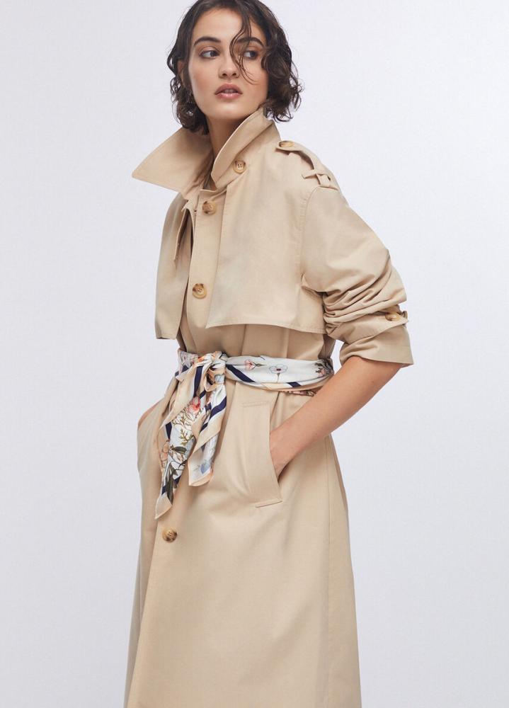 Elegantný béžový trenčkot s opaskom