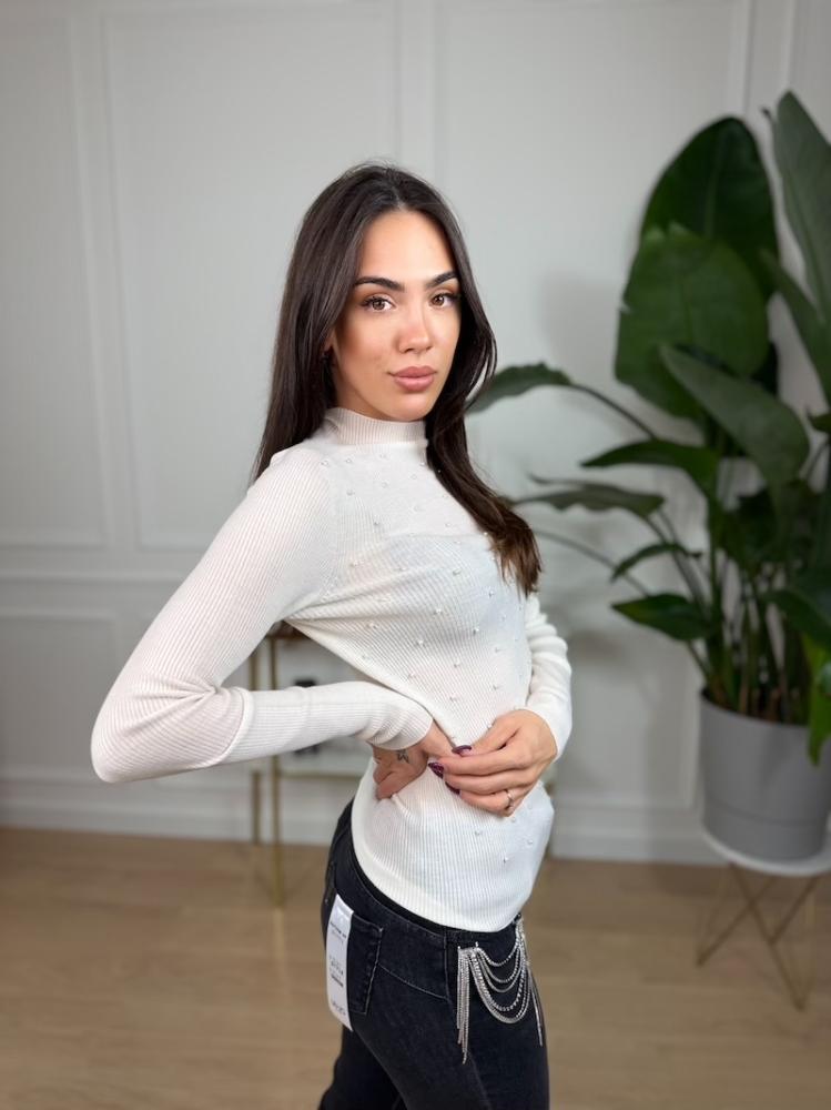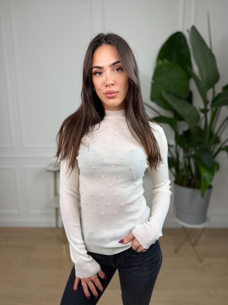 Liu Jo – biely ľahký pulóver s bielymi perličkami