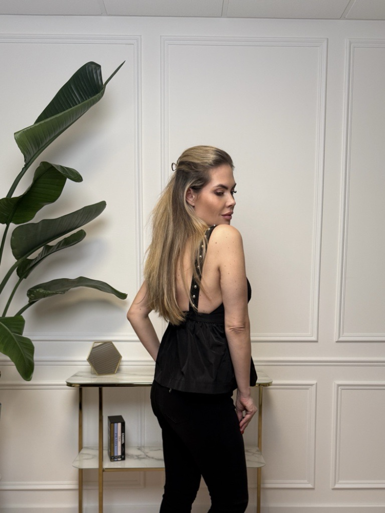Liu Jo čierny top na ramienka s výstrihom v tvare V.