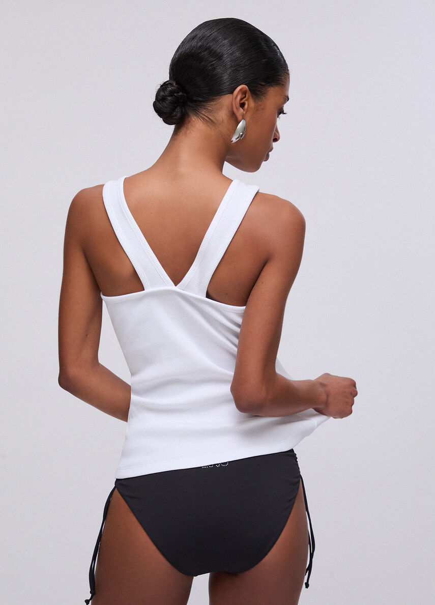 Základ šatníka s nádychom luxusu. Tento biely top od Liu Jo nie je len obyčajné tielko. Je to kúsok, ktorý definuje moderný minimalizmus – čisté línie, kvalitný materiál a jeden rafinovaný detail, ktorý ho odlišuje od ostatných.