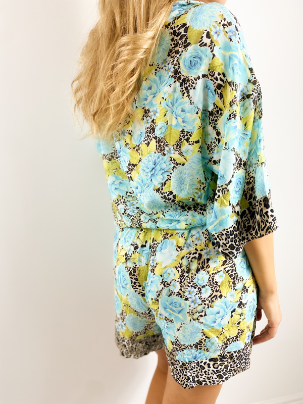Liu Jo ľahká letná trendy košeľa so vzorom animal a kvetinovým. ľahký strih so zapínaním na gombíky a viazaním. Kombinovateľné s dlhými a krátkymi nohavicami z rovnakej kolekcie.