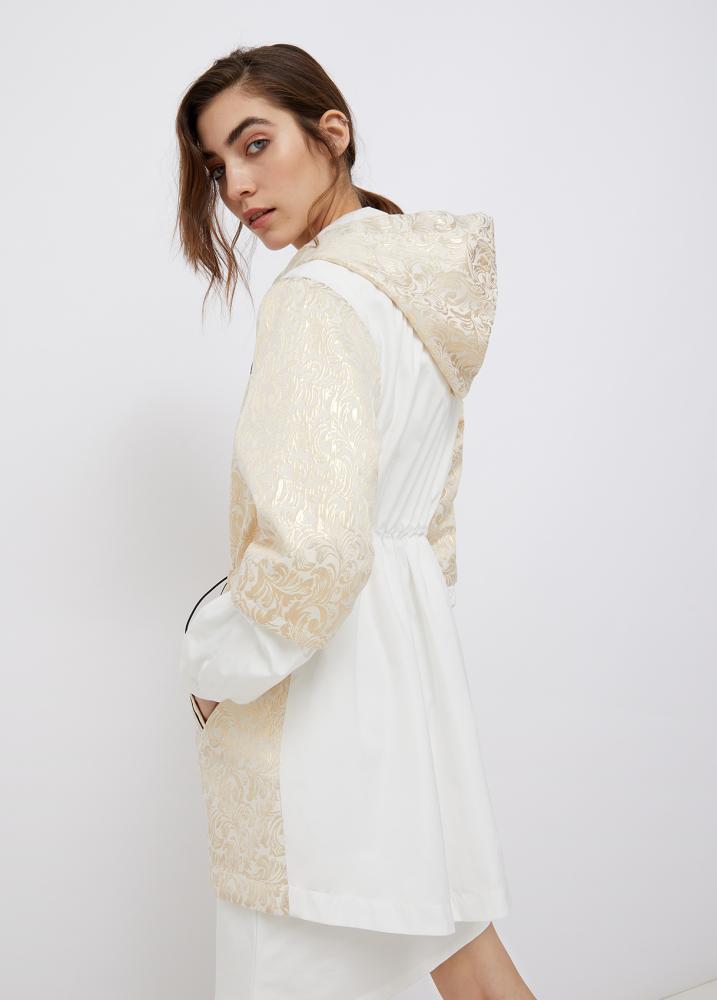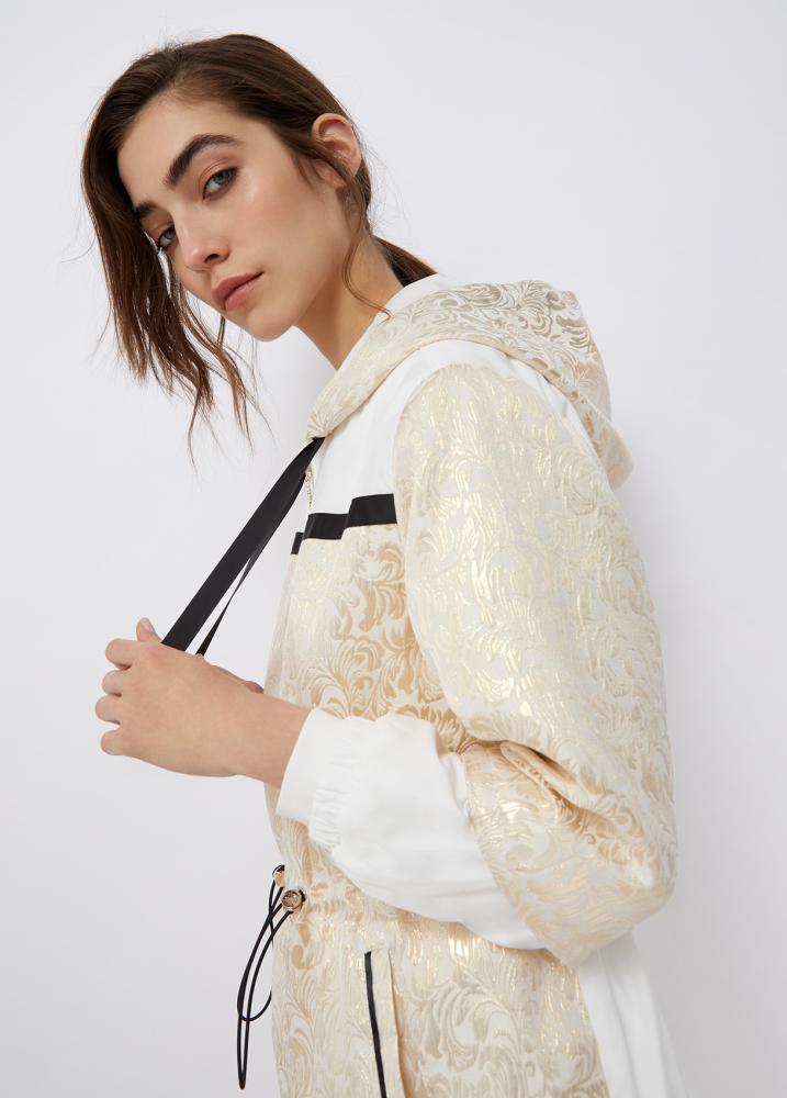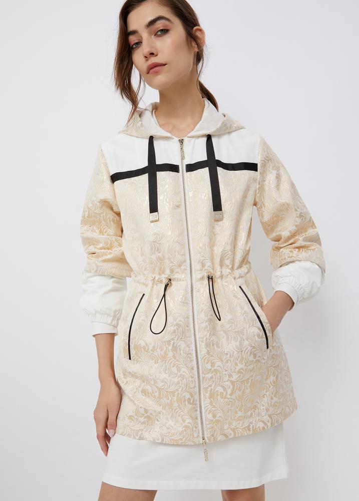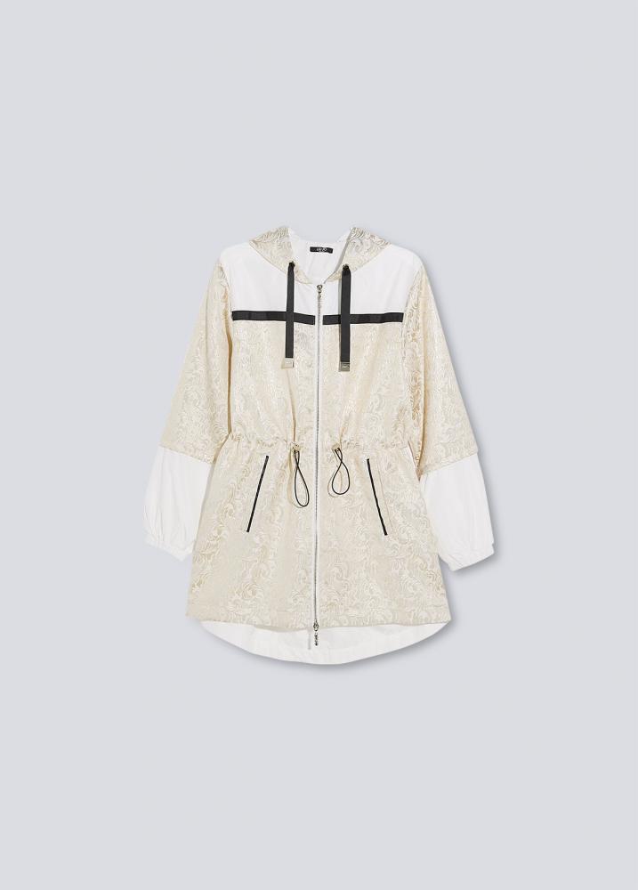 LIU JO Bundička zo žakárovej látky. Zlaté brokátové spracovanie. Kapucňa so sťahovacou šnúrkou. Nastaviteľná šnúrka v páse. Pohodlné vrecká a zapínanie na zips. Ceny sú vrátane DPH. Dostupné veľkosti uvedené v možnostiach košíka.