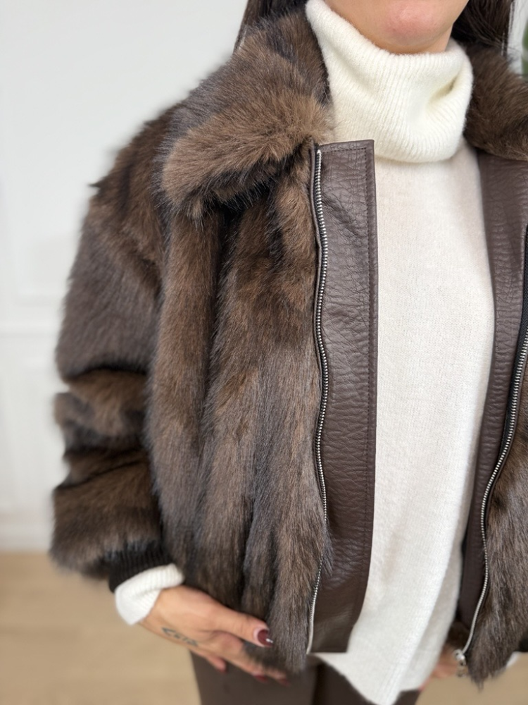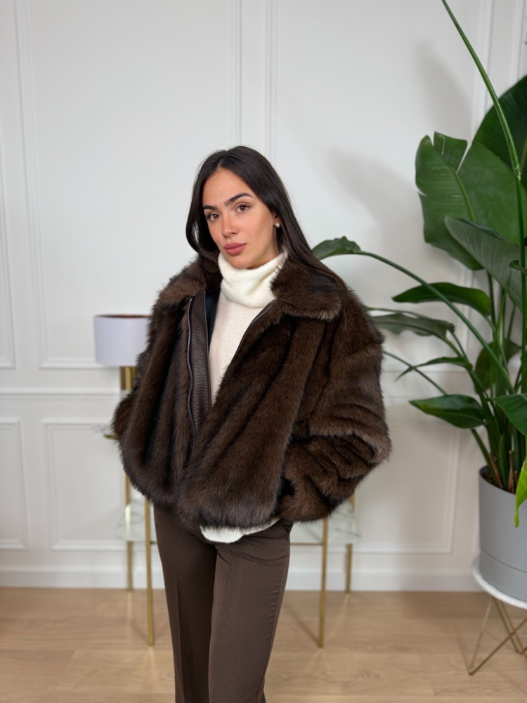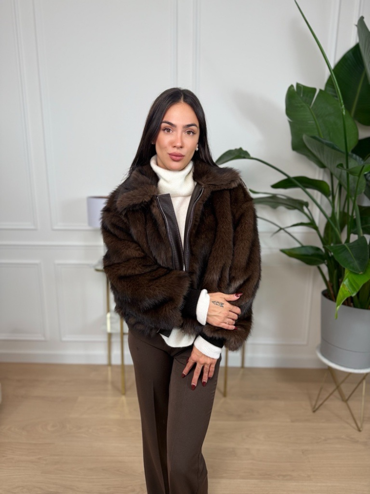 Dámsky kožuch Lumina na zips – hnedý