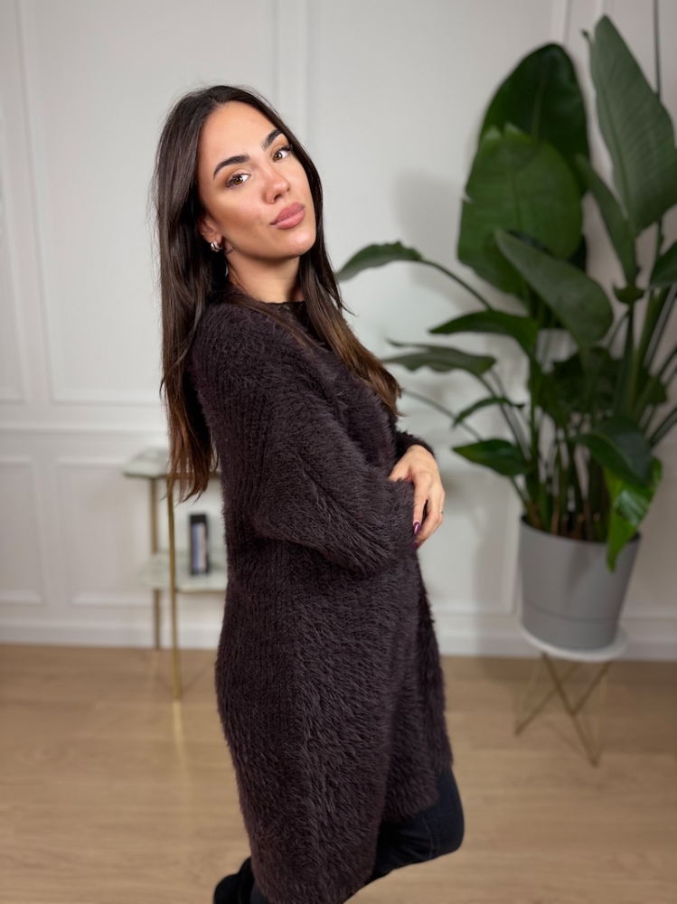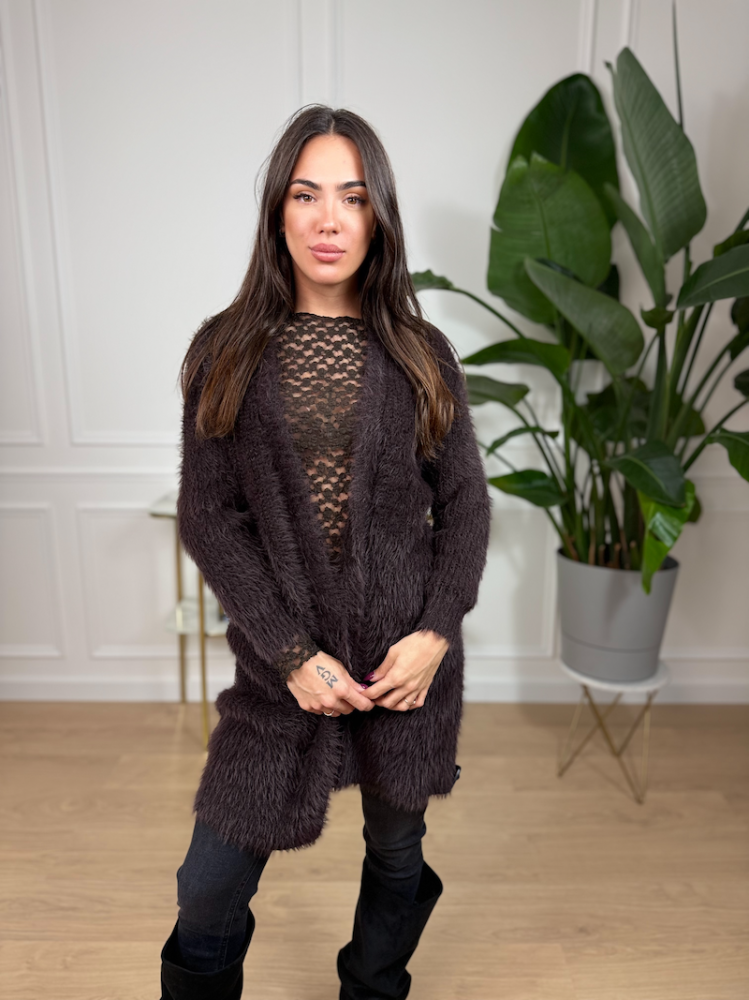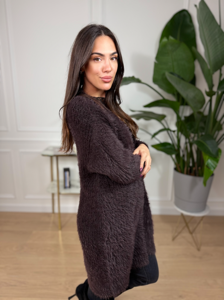 Myastreet – Hnedý huňatý kardigán s jemným chlpom