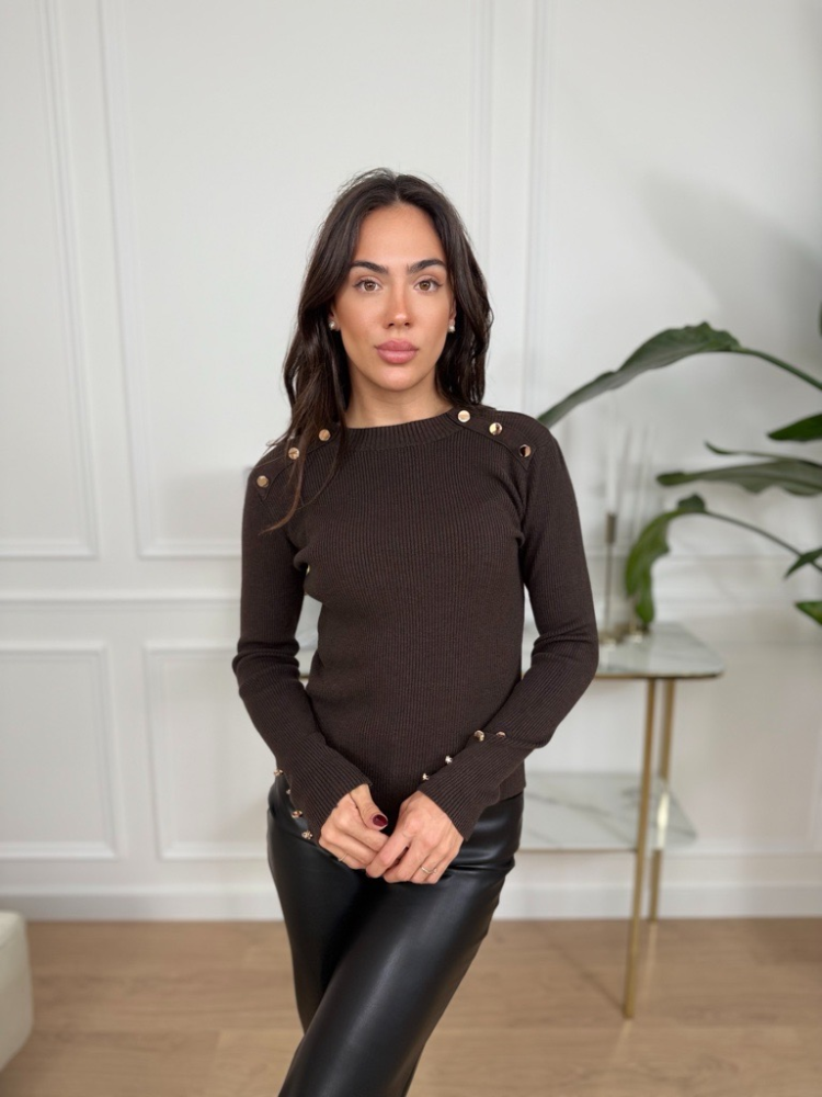 Myastreet hnedý rolák s okrasnými gombíkmi