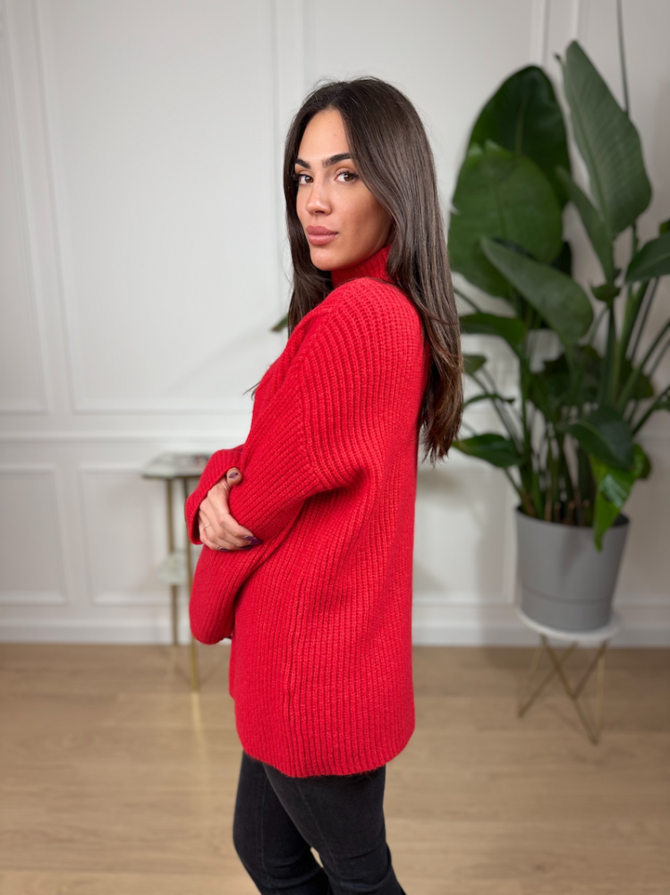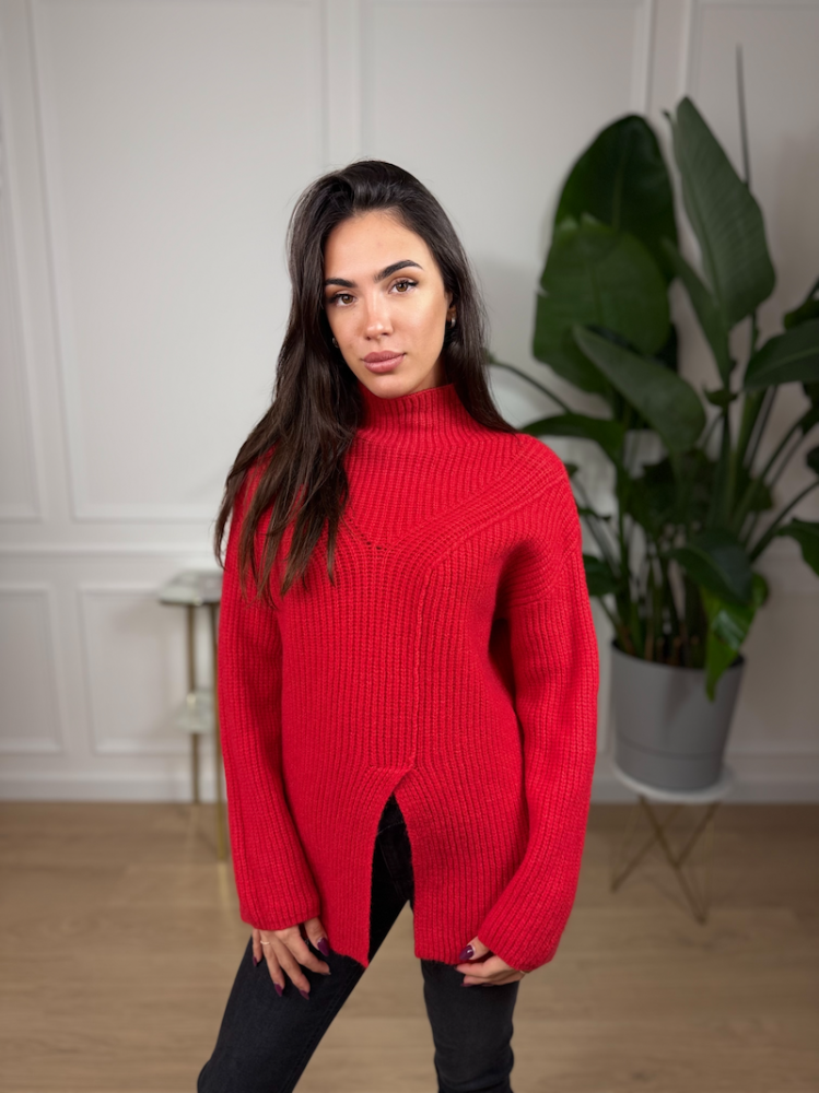 Myastreet – Červený sveter s rolákom a predným rozparkom