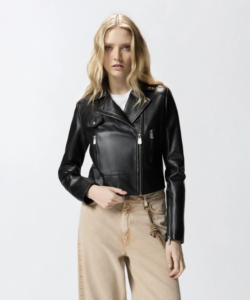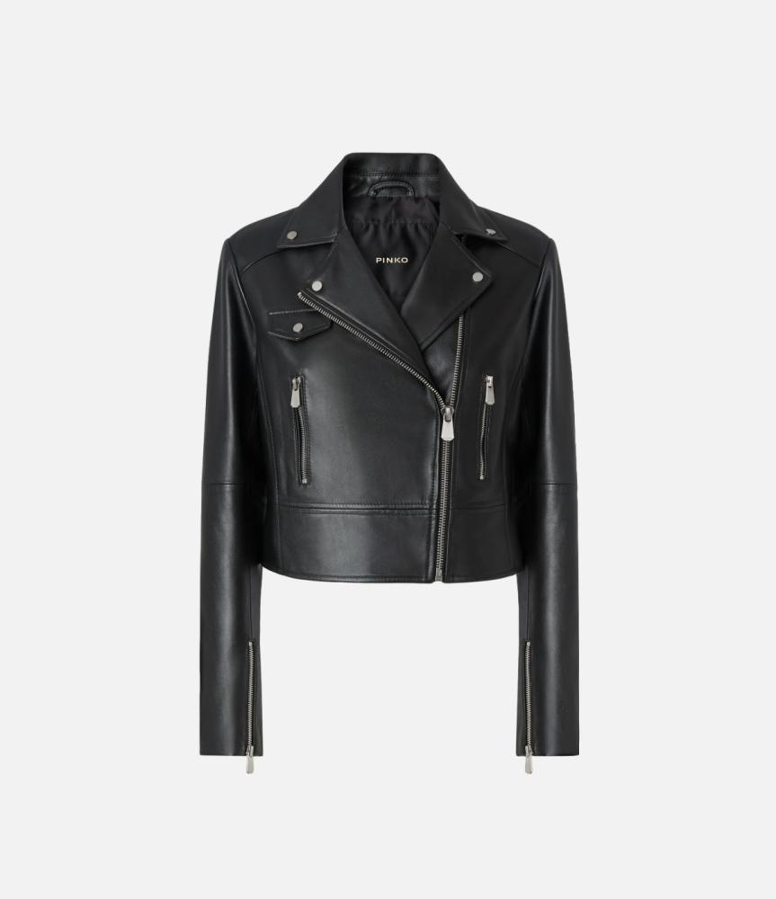 Ikonická klasika s rebelským nádychom, ktorá dodá šmrnc každému outfitu. Táto úchvatná čierna kožená bunda v "biker" štýle od značky PINKO je absolútnou nutnosťou a investičným kúskom, ktorý by nemal chýbať v šatníku žiadnej modernej a sebavedomej ženy.