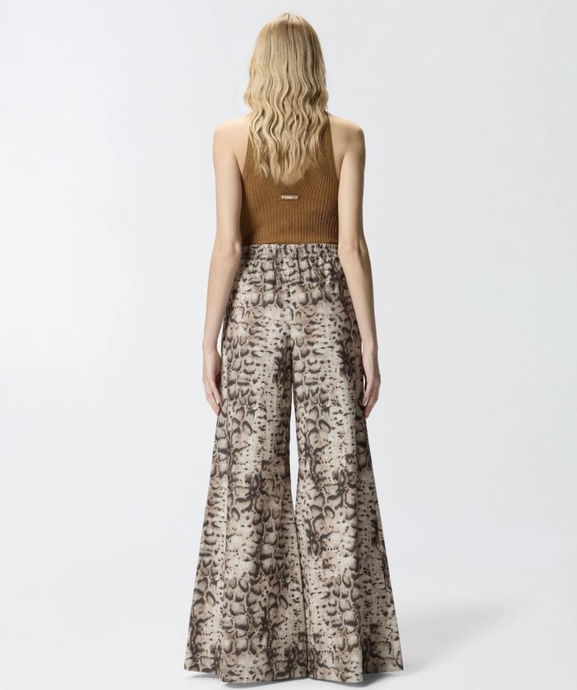 Odvážna elegancia a zvierací inštinkt pre váš neprehliadnuteľný štýl. Tieto úchvatné široké nohavice od značky PINKO s dominantným hadím vzorom sú dokonalým "statement" kúskom pre ženy, ktoré vedia, čo chcú, a neboja sa ukázať svoj jedinečný vkus.