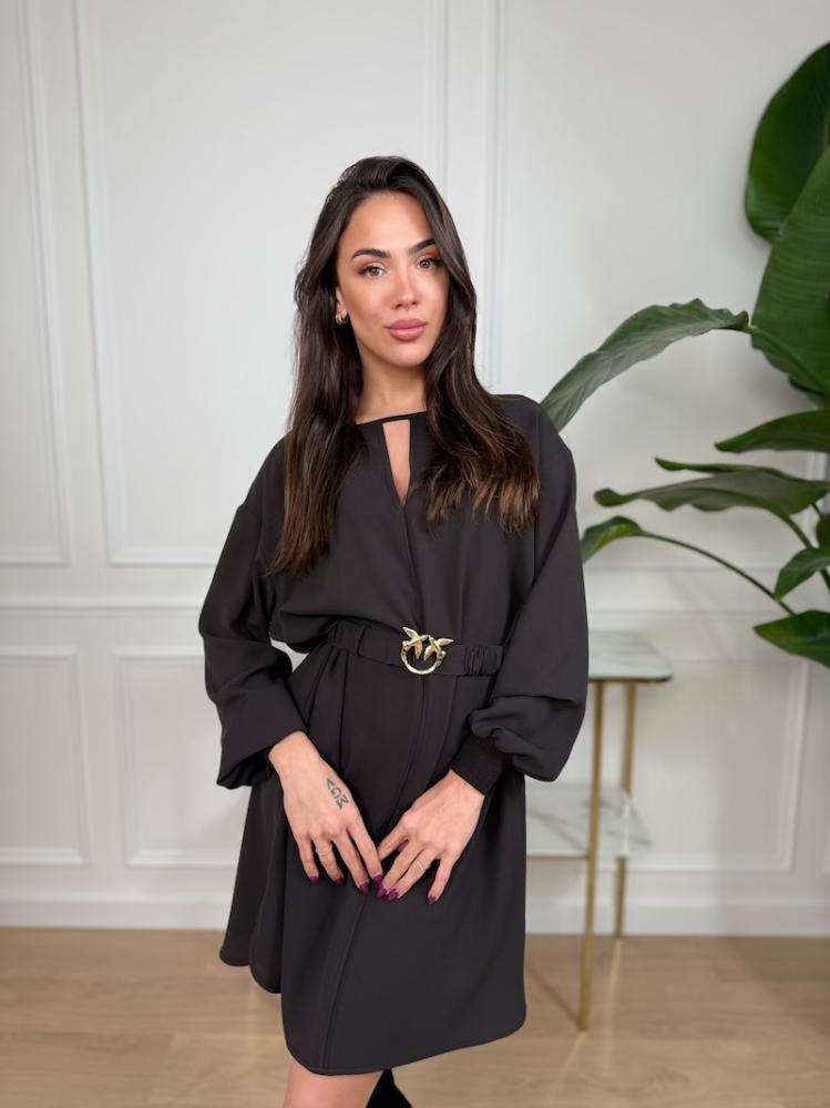 Pinko dámske šaty. Krásne trendy prevedenie vo voľnom komfortnom strihu s opaskom na vydriečenie s logom. Dlhý rukáv.
