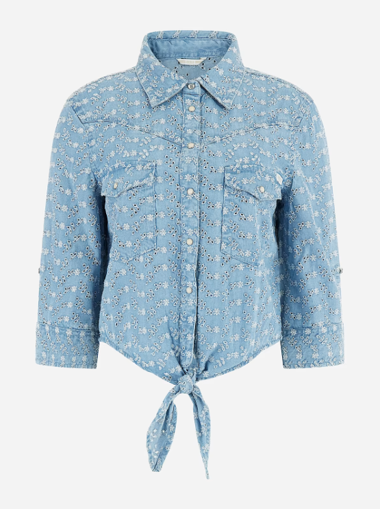 Blúzka zo zmesi lyocellu. Klasický golier. 3/4 rukávy. Uvoľnený strih. Uzol vpredu.